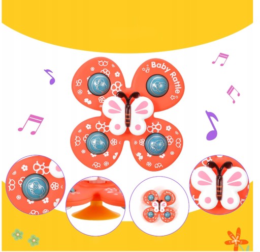 Zestaw 3 spinerów: biedronki, pszczółki i motyla pozwoli na świetną zabawę. Ich wielofunkcyjny charakter sprawi, że twoja pociecha długo nie będzie się mogła od nich oderwać!