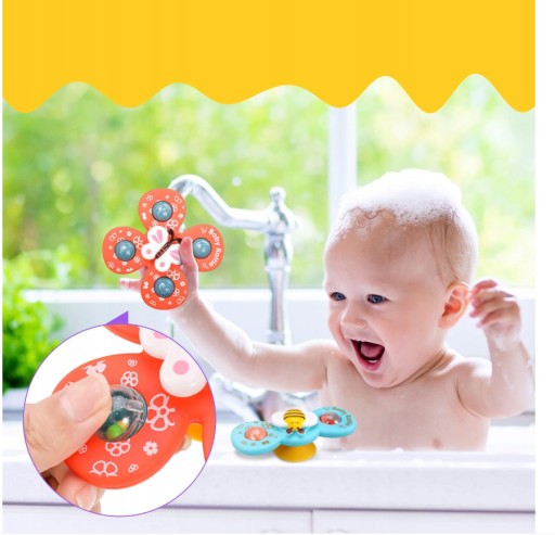 СПИННЕР С СЕНСОРНОЙ ПРИСОСКОЙ ПОДАРОЧНАЯ ПОГРЕМКА ДЛЯ ВАННЫ 3 ШТ.