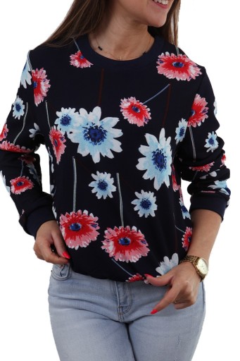 KLASYCZNA BLUZA NADRUK KWIATY PRINT ŚCIĄGACZE M/L