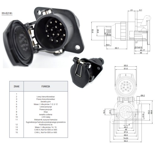 Gniazdo 15 PIN ADR 24V – gniazdo do transportu ADR