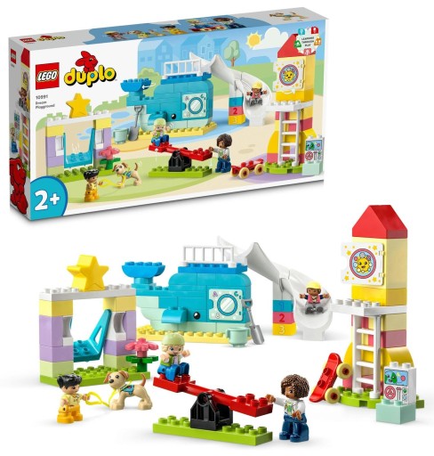 Niech zabawa na świeżym powietrzu zagości także wewnątrz Waszego domu dzięki temu ciekawemu i wszechstronnemu zestawowi LEGO® DUPLO® Town Wymarzony plac zabaw (10991). Maluchy w wieku od dwóch lat budują wspaniały plac zabaw, a następnie bawią się i uczą, poznając nowych przyjaciół.