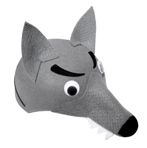 Przedstawia głowę wilka z doczepionymi oczkami, ryjkiem i uszkami.