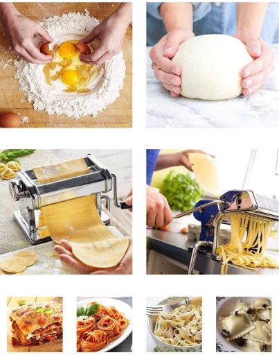 Profesjonalny zestaw do makaronów pozwalana własnoręczne przyrządzenie świeżego makronu w każdej chwili. Maszynka jest praktyczna, wysokiej jakości maszynka do robienia makaronów oraz wałkowania ciasta.