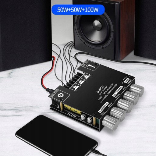 Specyfikacja płyty wzmacniacza mocy: Moc wyjściowa płyty wzmacniacza mocy do 50 W 50 W 100 W, wejście audio AUX, wyjście stereo 2.1-kanałowe, zapewniają ciągłą szeregową pracę z dużą mocą, odpowiednie do zasilania DC12-24V/5A lub wyższego (pakiet 24V nie może być podłączony ), odpowiednie dla głośników 20~100W, 4~8Ω.