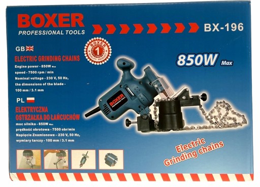 Przedmiotem aukcji jest elektryczna ostrzałka do łańcuchów o mocy 850W renomowanej marki BOXER .