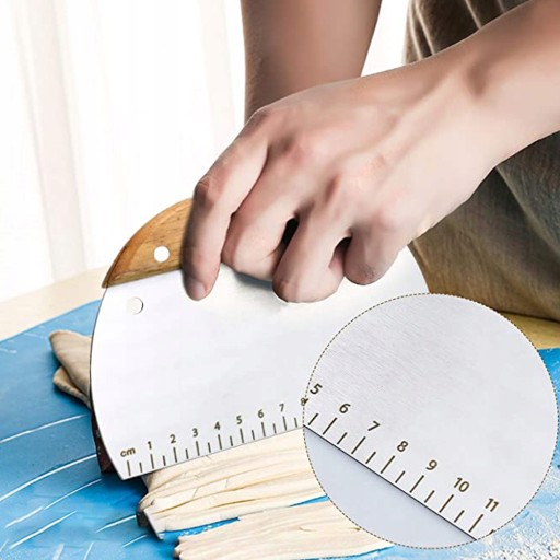 Nazwa: dwuczęściowy zestaw skrobaka do mąki ze stali nierdzewnej z nożem do makaronu, półokrągły skrobak kwadratowy skrobak