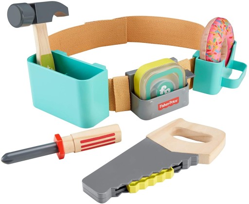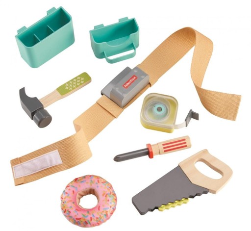 Wszystkie ulubione sprzęty takie jak piła, miarka czy młotek maluch może przenosić przy pomocy specjalnego regulowanego pasa od Fisher Price. Znalazło się tam również miejsce na pluszowego donuta z posypką. Jest to zdecydowanie niezbędnik każdego małego majsterkowicza.