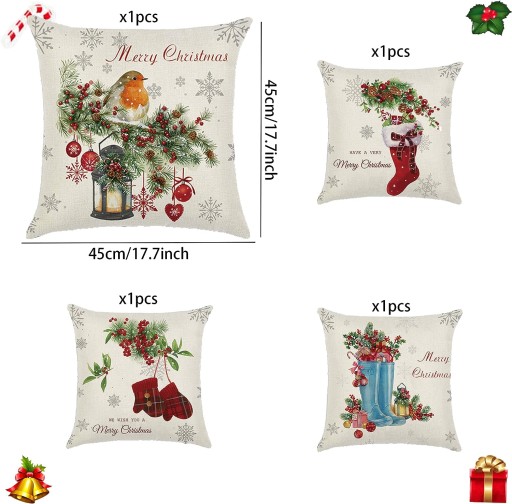 4 szt. poszewki na poduszkę, Boże Narodzenie, dekoracja wnętrz.