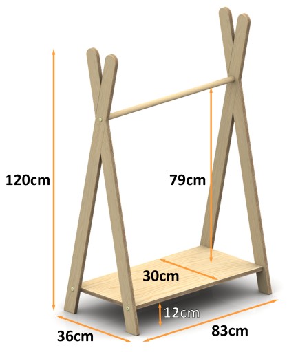 ❇️ Wieszak Na Ubrania TIPI L – stojący, podłogowy, drewniany, w rozmiarze 120 x 83 cm.