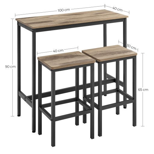 Industrialny zestaw: stół barowy i 2 krzesła-stołki barowe to funkcjonalny i niebanalny element modnych wnętrz.