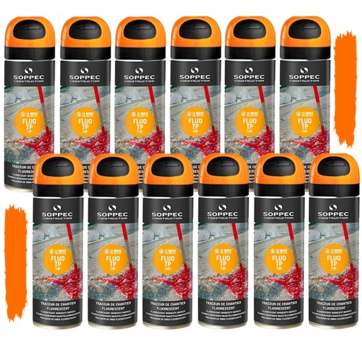 12x ГЕОДЕЗИЙСКАЯ КРАСКА-СПРЕЙ FLUO T.P. SOPPEC ОРАНЖЕВЫЙ ДЛЯ МАРКИРОВКИ