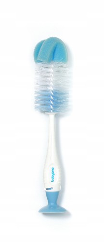 Szczotka z przyssawką „SAMOSTOJĄCA" pomaga w dokładnym czyszczeniu zarówno butelki, jak i smoczka. Szczotka posiada przyssawkę, która umożliwia przyczepienie jej do płaskich powierzchni, dla ułatwienia osychania. Szczotka do butelki jest zakończona miękką gąbką, która dostosowuje się do kształtu butelki. W uchwycie rączki jest schowana mała szczotka do czyszczenia smoczka. Miękkie włosie szczotek i gąbka docierają do trudno dostępnych miejsc. Szczotki wykonane są z trwałych i bezpiecznych materiałów, nie zawierających Bisfenolu A.