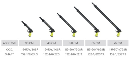 Kusza Seac Asso S/R (bez regulatora mocy) występuje w 5 długościach, od Asso C/R 30 do Asso S/R 75. Krótszy model, Asso S/R 30, ma opcjonalną dedykowaną nogę (sprzedawana oddzielnie).