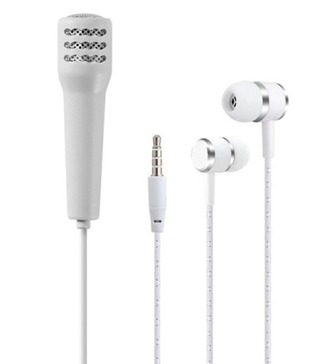Mini mikrofon przewodowy ze słuchawkami może być używany z telefonem, a dzięki specjalnej aplikacji możliwe jest nagrywanie karaoke w pamięci smartfona.