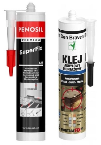 Panele montujemy na klej montażowy Penosil lub DEN BRAVEN który jest dostępny na naszych innych aukcjach. Jeden kartusz wystarcza do przymocowania 5 m2 paneli.