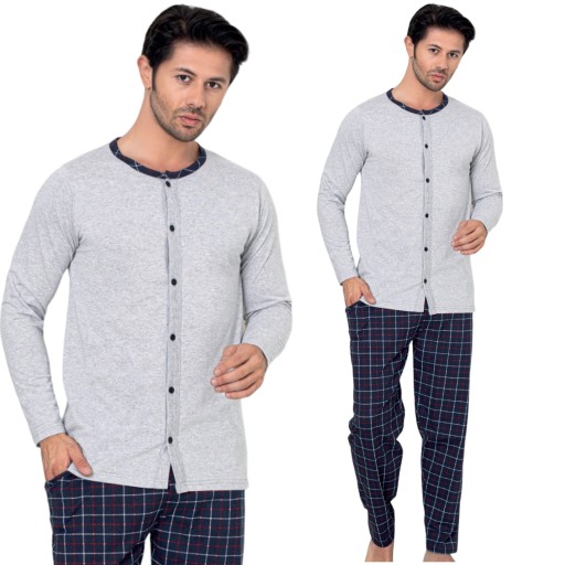 BAWEŁNIANA MĘSKA PIŻAMA CAŁA ROZPINANA Z DŁUGIM RĘKAWEM I DŁUGIMI SPODNIAMI