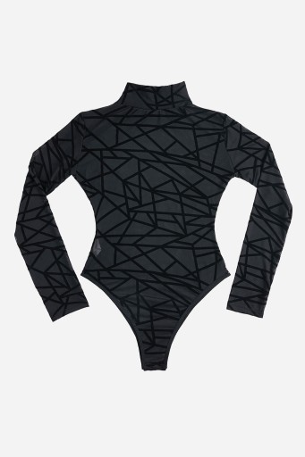Prześwitujące body z wzorem wykonane z elastycznego oraz miłego w dotyku materiału. Body z długimi rękawami wykończone półgolfem, zapinane w kroku na zatrzaski.