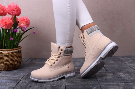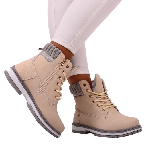 Damskie, wsuwane traperki w kolorze beżowym. Posiadają ocieplenie w postaci futerka- idealne na zimę❗ Posiadają zapięcie na suwak, co umożliwia łatwe zakładanie. ❄ Stabilna, gruba podeszwa dobrze amortyzuje stopę oraz chroni przed zimnem. Wykonane z dobrych jakościowo materiałów. Prosty fason sprawia, że pasują do wielu stylizacji.