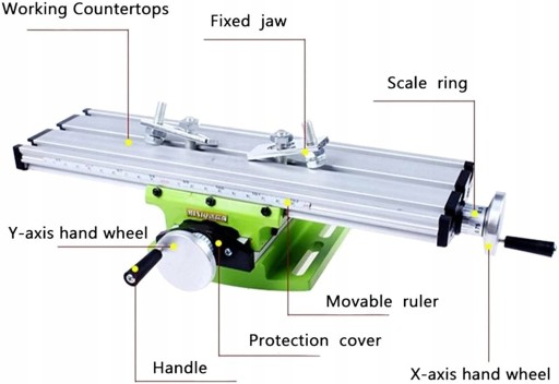 skala przednia jest ruchoma. stół roboczy składa się z kilku regulowanych stopów aluminiowych dovetail, zapewniając najmniejszą ruchomą przestrzeń i zapewnienie dokładności.
