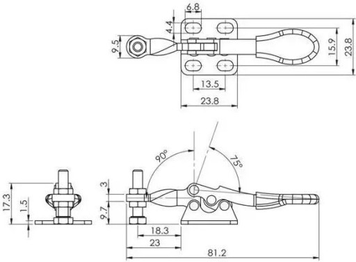 Uniwersalny zacisk szybkomocujący poziomy o sile 27 kg. Bardzo praktyczne narzędzie do szybkiego chwytania przedmiotów. Zacisk poziomy z dociskiem wykorzystany może być w warsztatach modelarskich, elektronicznych itd.
