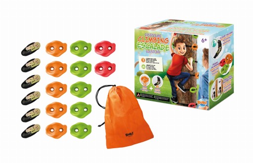 Zestaw marki Buki wprowadzający dzieci do bezpiecznej wspinaczki. W zestawie znajduje się 6 pasków i 12 uchwytów do szybkiego i łatwego montażu np: wokół drzewa. Stwarza to idealne trasy przygód dla dzieci. Paski są mocowane za pomocą bezpiecznych grzechotek. Zestaw do wspinaczki to znakomita okazja do nauki samodzielności, rozwoju sprawności fizycznej, a także planowania przestrzennego.