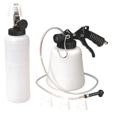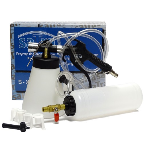 Lekki poręczny zestaw przystosowany do wymiany płynu hamulcowego , posiadający system veturiego , dzięki któremu powstaje próżnia umożliwiająca odpowietrzenie układu hamulcowego.