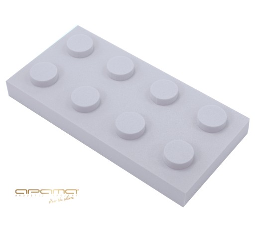 Panele dźwiękochłonne w kształcie klocka, wykonane z elastycznej poliuretanowej pianki technicznej SF36 ze specjalnie dobraną antystatyczną, DEKORACYJNĄ POWŁOKĄ przypominającą zamsz (welur).