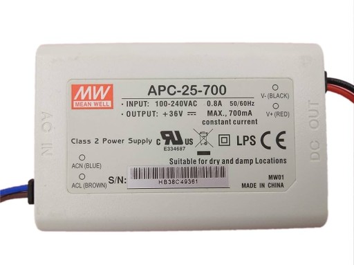 Источник питания для светодиодов Mean Well APC 25-700, 25,2 Вт, 700 мА