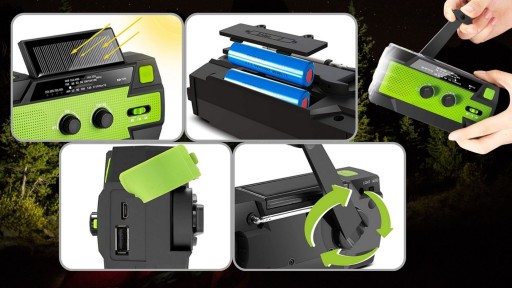- ✅4 metody ładowania - poprzez energię słoneczną, korbę rozruchową, z baterii oraz kabel USB