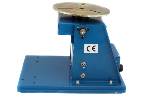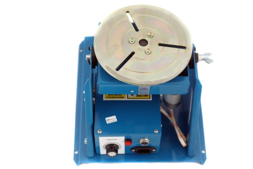 Tarcza pozycjonera może być pochylana w zakresie 0 - 90°. Wyposażona jest w rowki montażowe, w ktorych montuje się szczęki i uchwyty. Urządzenie ma możliwość wyboru kierunku obrotu tarczy obrotnika i regulację prędkości obrotowej. Wyposażone jest w pedał sterowniczy (start-stop) umożliwiający zdalne sterowanie pracą bez przerywania procesu spawania.