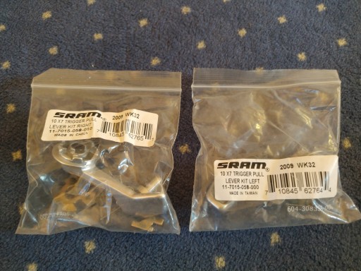 Witam serdecznie zainteresowanych. Oferuje komplet (prawa + lewa) dźwigni do manetek SRAM X7 3x9 2010. Zestawy są oryginalne SRAM. Zestaw nowy. Numer części SRAM: 11.7015.058.010 i 11.7015.058.000