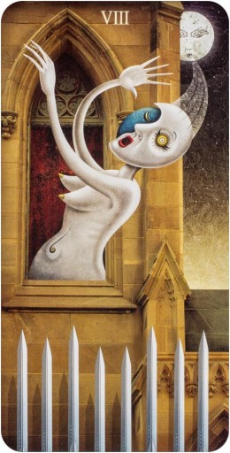 Utalentowany artysta Patrick Valenza prezentuje unikalnie alternatywne interpretacje tradycyjnego tarota z symboliką inspirowaną dziecięcymi marzeniami. Stylizowane postacie o księżycowych twarzach, stworzone z przetworzonych fotografii XVIII-wiecznych nagrobków, znajdują się na sugestywnych tłach. Wplecione w dzieło sztuki są surrealistyczne sceny odległych kominów dymnych, azyli dla obłąkanych i opuszczonych budynków. Dzięki większym kartom, ta specjalna Edycja Borderless podkreśla oszałamiającą grafikę Patricka Valenzy i pozwala czytelnikom głębiej połączyć się z sugestywnymi obrazami tarota.
