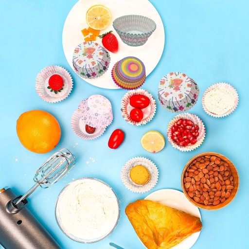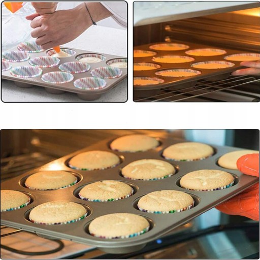 Foremki do muffinek są wykonane z papieru przeznaczonego do kontaktu z żywnością, który jest odporny na plamy i zapachy oraz jest trwały.