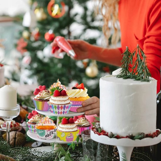 【Wszechstronność】: Nasze foremki do babeczek nadają się doskonale do przechowywania słodyczy, orzechów i innych smakołyków na imprezę. Wspaniała dekoracja na urodziny lub świąteczne wypieki i desery. Szerokie zastosowanie do pieczenia w domu, na pikniku, cukiernikach, urodzinach, uroczystościach świątecznych itd.
