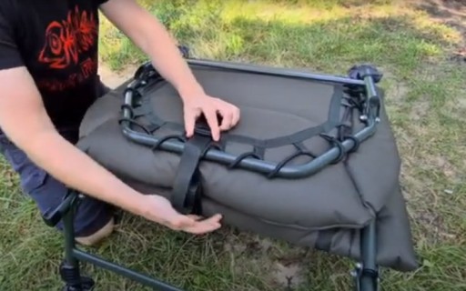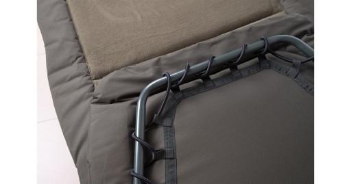 Łóżko karpiowe najwyższej klasy, wyposażone w 6 regulowanych nóżek, wygodny i gruby, polarowy materac zamocowany do ramy za pomocą sztywnego materiału i mocnych gum. Odpowiednio sztywne i stabilne, gwarantuje komfortowy nocleg nawet na długich zasiadkach.