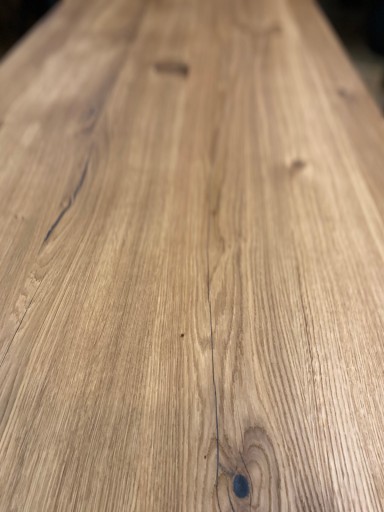 Blat stołu jest dokładnie wyszlifowany, gotowy do wykończenia olejem lub lakierem.