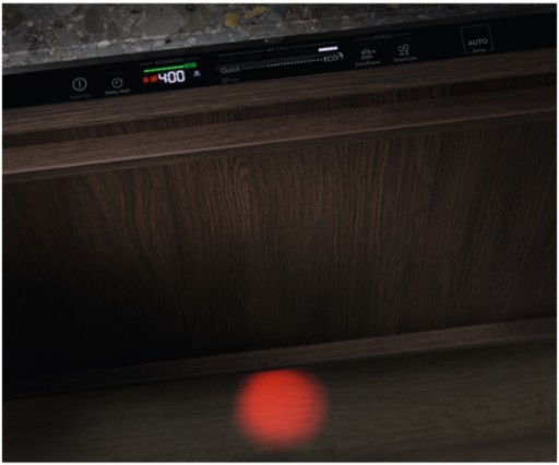 - Funkcje dodatkowe: Beam on floor, Dodatkowe płukanie, Oświetlenie wnętrza, Sygnał dźwiękowy, Wskaźnik przebiegu programu