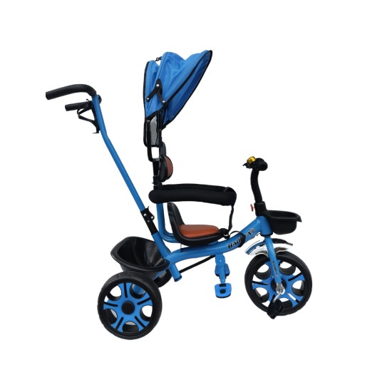 Rowerek trójkołowy jest świetną alternatywą dla wózka spacerowego, nasz rower może być używany jako pojazd, które dziecko prowadzi samo, pedałując lub po złożeniu podnóżków może również się odpychać .