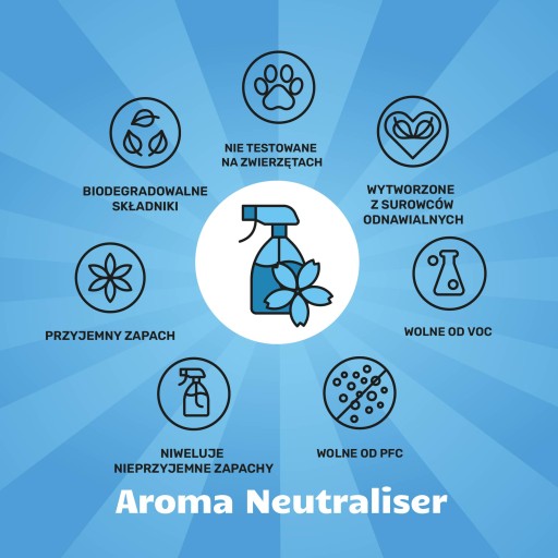 Neutralizuje nawet najcięższe odory. Zapach odchodów pupila, spalenizna, wymiociny, stęchlizna, zgnilizna, dym z fajek. Zamienią się więc w wiosnę w krainie kwitnącej wiśni.