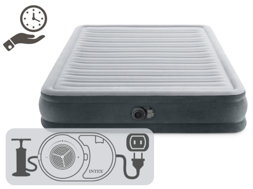 Materac dmuchany z kolekcji Comfort-Plush Mid-Rise Air Mattress firmy Intex to doskonały wybór na łóżko turystyczne, które będzie niezastąpione podczas niezapowiedzianej wizyty gości. Wbudowana pompka elektryczna pozwala przygotować dwuosobowy materac w zaledwie kilka minut. Dołączona do zestawu torba, ułatwi jego transport jak i przechowywanie. Intex stworzył produkt, który zapewni maksymalną wygodę oraz funkcjonalność.