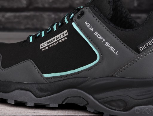 Buty typu sportowego DK Softshell - trekking. Materiał softshell ma właściwości oddychąjace, wiatroodporne i w pewnym stopniu wodoodporne (nie wodoszczelne). Zalecane jest używanie impregnatów w celu uzyskania lepszej wodoodporności.