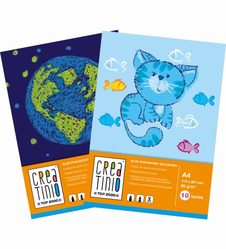 * blok rysunkowy kolorowy CREATINIO TOP 2000 * blok rysunkowy odporny na wielokrotne ścieranie gumką * papier barwiony w masie sprawia, ze wydzieranki mają kolorowe krawędzie (tektura barwiona w masie to papier niepowlekany, któremu kolor nadawany jest jeszcze w procesie produkcji - technologia barwienia w masie polega na użyciu barwnika do masy papierniczej - do barwienia masy wykorzystuje się barwniki rozpuszczalne lub kolorowe pigmenty) * idealnie nadaje się do rysunków i szkiców * ciekawe, kolorowe okładki zachęcają i inspirują do tworzenia ciekawych prac artystycznych * okładka: miks wzorów/kolorów wysyłanych losowo * kartonowa podkładka usztywniająca z tyłu bloku * nie traci koloru podczas malowania * format: A4 * ilość kartek: 10 * kolory kartek: żółty, pomarańczowy, czerwony, różowy, jasnozielony, ciemnozielony, jasnoniebieski, ciemnoniebieski, brązowy, czarny * papier o gramaturze 80 g/m2 * szerokość: 29,7 cm * wysokość: 21 cm * grubość: 0,16 cm * TOP-2000 jest jedną z najpopularniejszych marek w branży artykułów papierniczych w Polsce - od utworzenia w 1989 roku, celem TOP-2000 zawsze jest dostarczenie papierowych produktów najwyższej jakości skierowanych dla szkoły, biura i domu