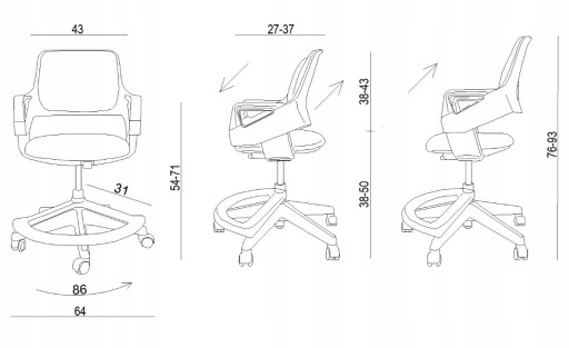 Nieprzeciętną wygodę zapewnia możliwość regulacji wysokości i głębokości siedziska oraz możliwość dokładnego wyregulowania oparcia, dzięki temu fotel obrotowy Rookee można dopasować do małego i dużego ucznia.