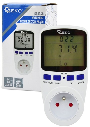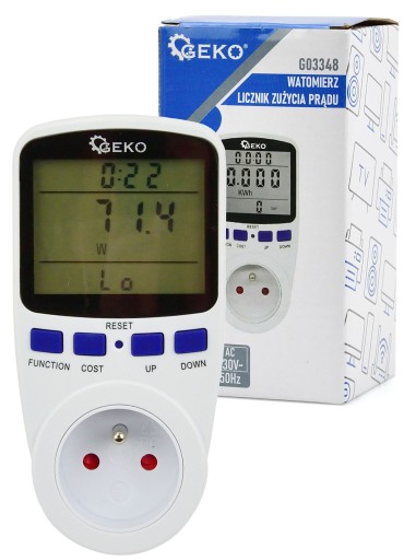 Posiada duży, czytelny wyświetlacz oraz 4 intuicyjne przyciski do sterowania urządzeniem. Miernik pozwala również na dokonanie pomiaru natężanie prądu(A), napięcia(V), częstotliwości(Hz). Po wprowadzeniu stawki za 1kWh urządzenie obliczy wysokość opłat za energię.