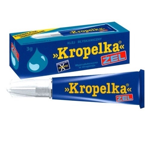 Kropelka błyskawiczny klej w żelu przeznaczony do łączenia różnych tworzyw.