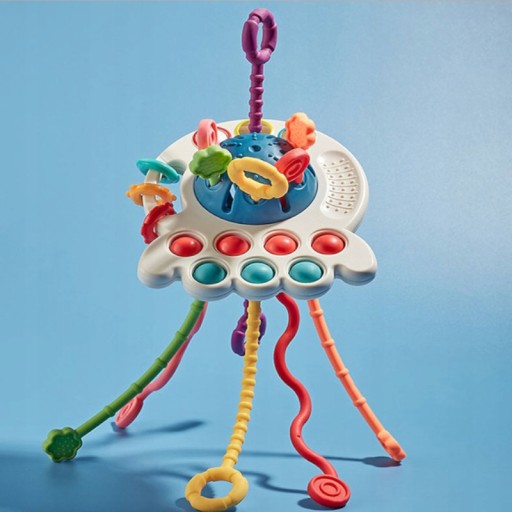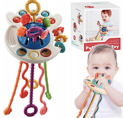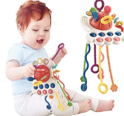- WIELOFUNKCYJNA ZABAWKA SENSORYCZNA - zabawka z powodzeniem może służyć jako gryzak, jak również przedmiot do treningu małych rączek. Wiele przycisków do naciskania, strun z różnymi końcówkami i różnym stopniem trudności w wyciąganiu, sprawiają, że przedmiot będzie cieszył przez długie godziny.