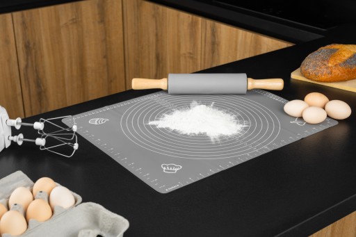 Silikonowa mata to nowoczesna stolnica do rozwałkowywania ciast. W porównaniu do klasycznych, drewnianych stolnic, jest znacznie łatwiejsza do przechowywania – po zwinięciu matę można postawić w pionie, schować do szafki lub szuflady. Dużą zaletą maty silikonowej jest utrzymanie jej w czystości, ponieważ do silikonowej powierzchni ciasto przykleja się mniej niż do deski, dodatkowo można ją myć w zmywarce. Mata jest idealnym produktem do przygotowania pizzy – można na niej wygnieść ciasto i rozwałkować je do pożądanej średnicy oznaczonej na skali.