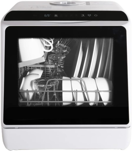 Mini zmywarka stołowa, do użytku z i bez podłączenia do wody, szerokość 43 cm, miejsce na 4 sztućce, do użytku na kempingu, 175 kWh/rok, biały