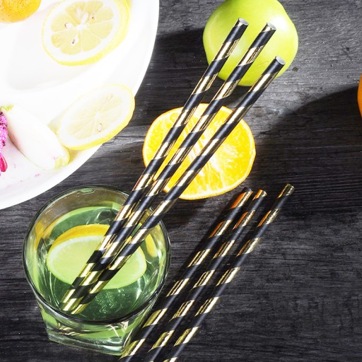 N 25 SZTUK Czarno-złote paski festiwal słomy wesele sezon ukończenia szkoły zaopatrzenie firm