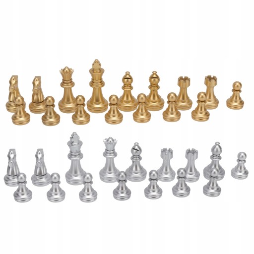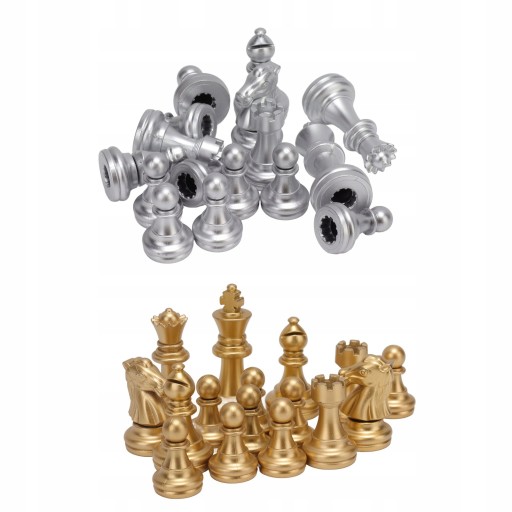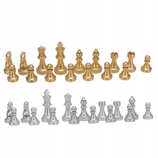 2. Złoto i srebro: W opakowaniu znajdują się 32 figurki szachowe, 16 figurki mają kolor złoty i 16 figurki srebro, które są piękne i nie łatwe do wyblaknięcia.
